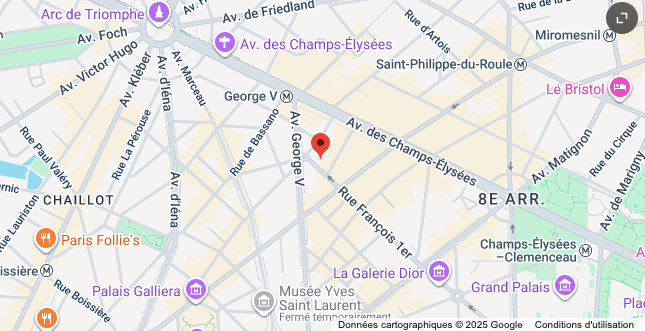 Adresse postale : 60 Rue François Ier, 75008, Paris